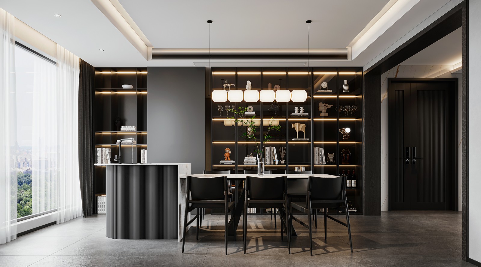 现代大平层黑白灰客餐厅