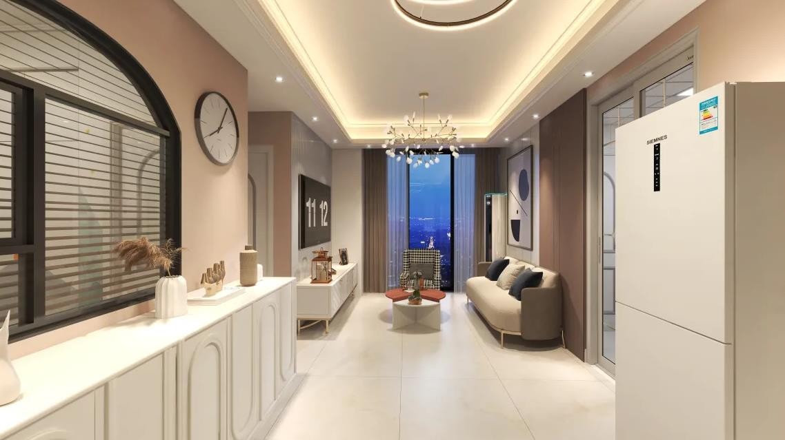 因空间的局限 进门没有做到顶高柜,选用低柜进门不会压抑