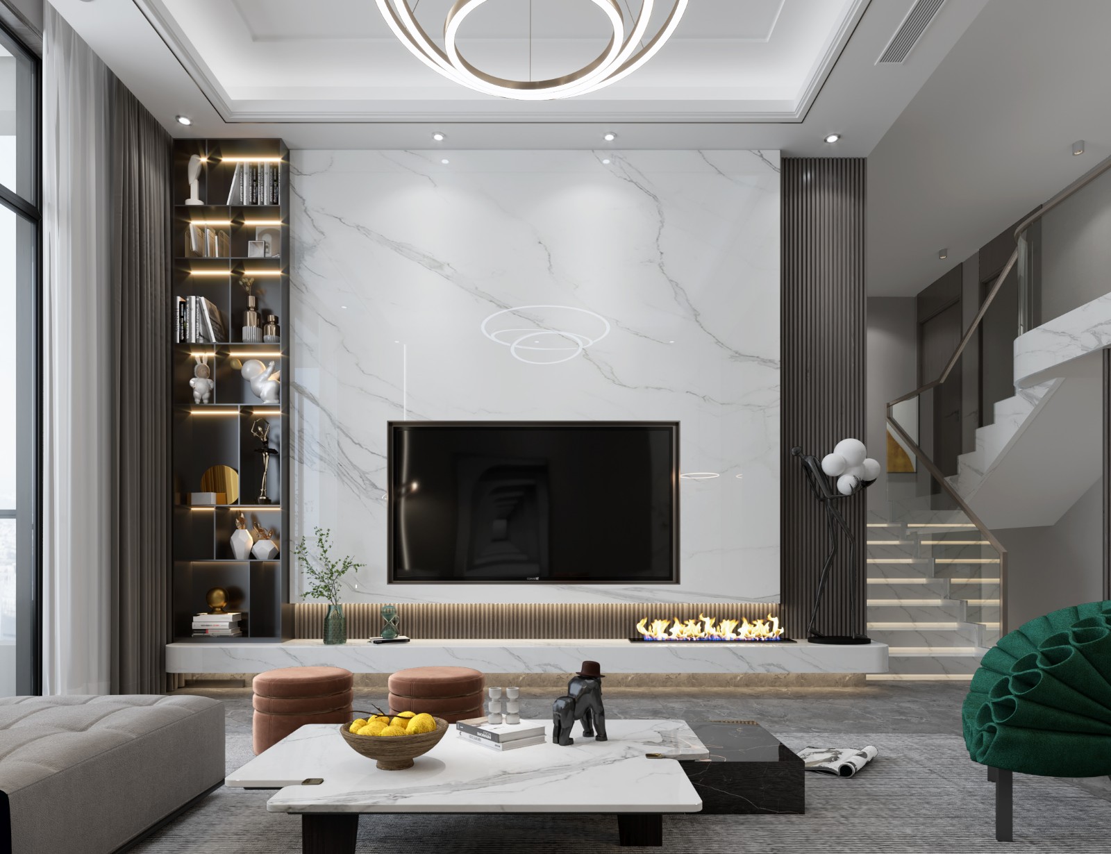 案例中,造型与色彩搭配都以简约利落凸显时尚感,既不过分张扬也不会过于寡淡,用简洁的设计语言,呈现出一个舒适自然的居住空间。