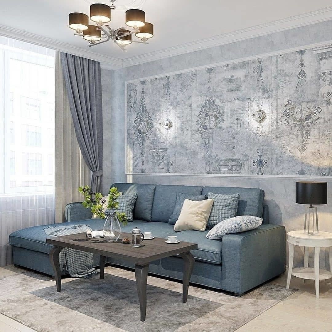 沙发墙上有细腻的花纹,欧式感一下子就出来了。