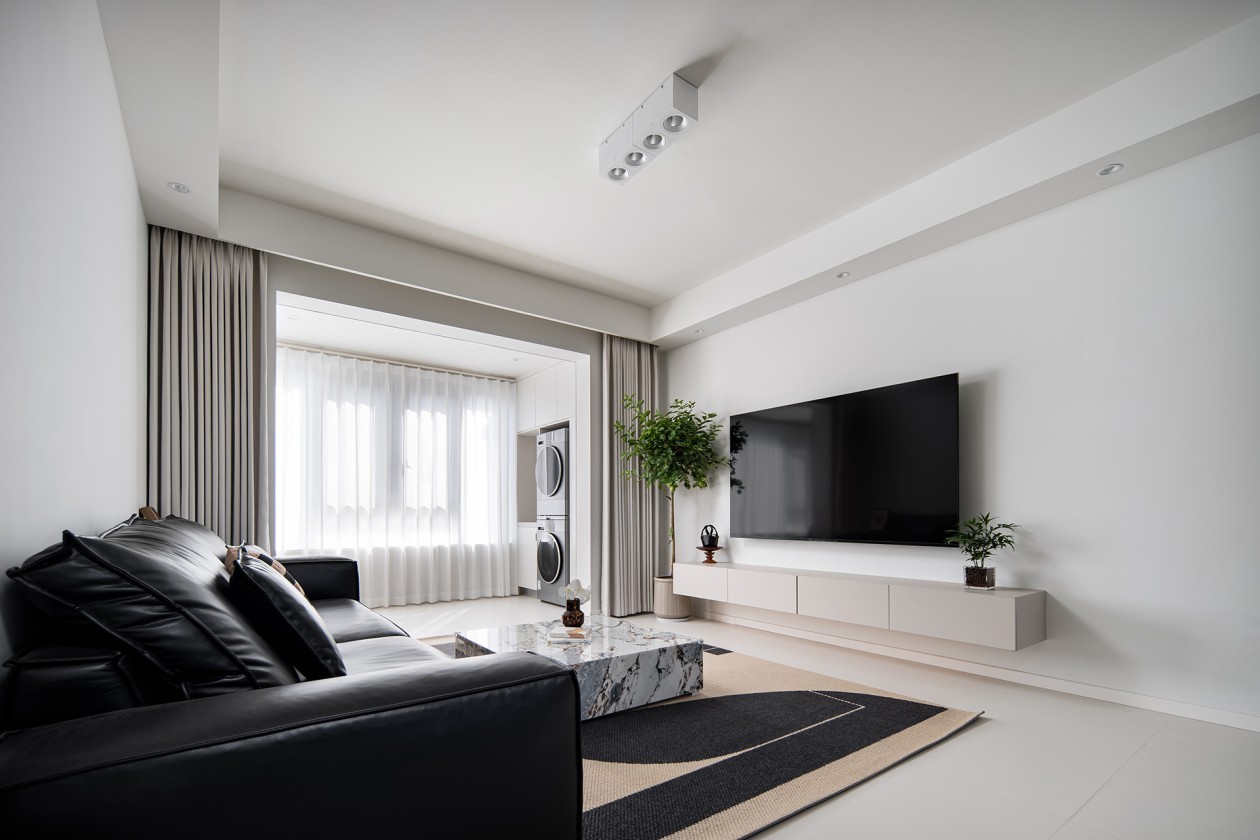 客厅采光良好,直线条和黑白色的衔接,现代化的气息扑面而来。