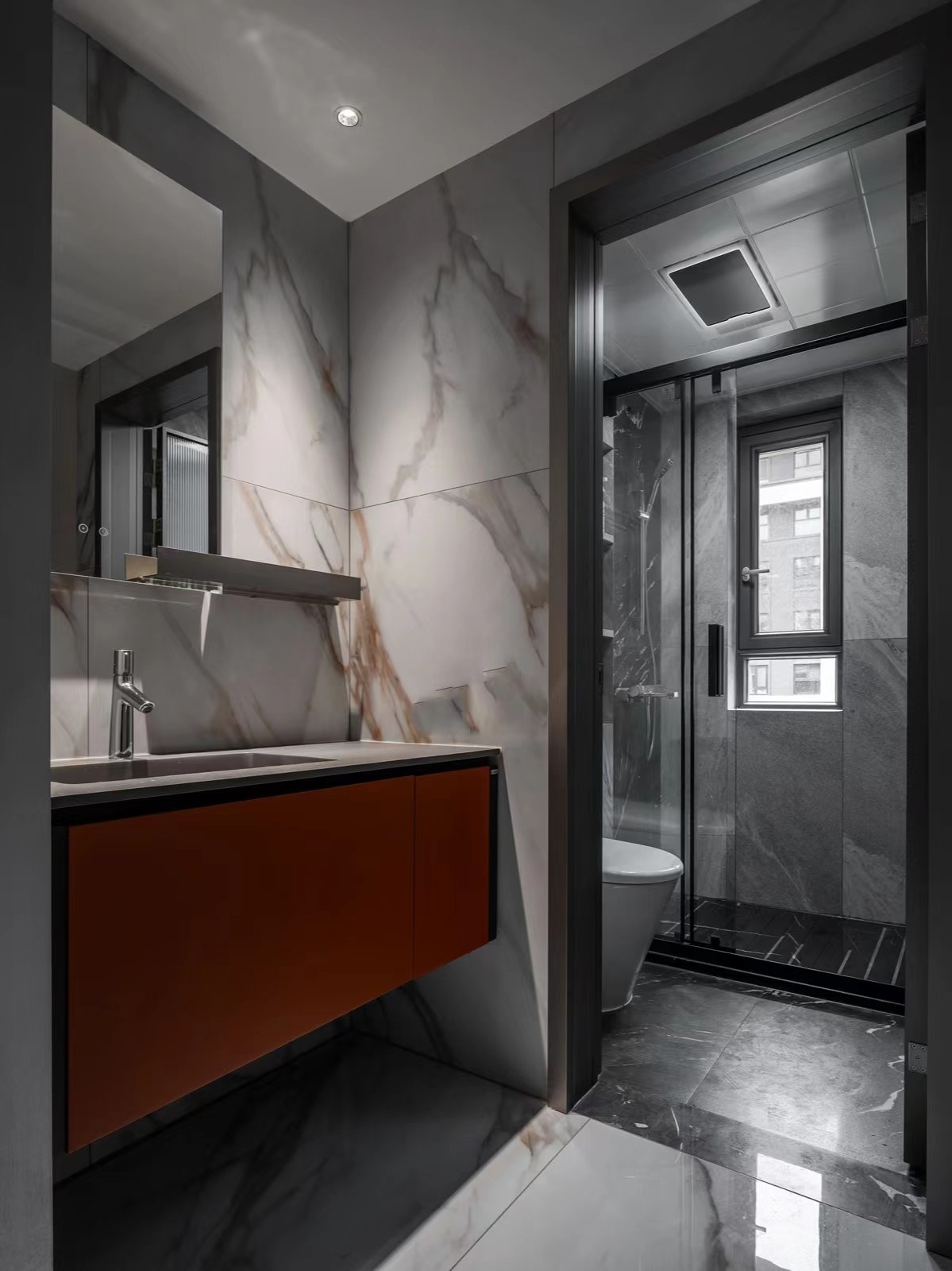 浴室柜选择了红色的,给整个空间添加了点睛之笔