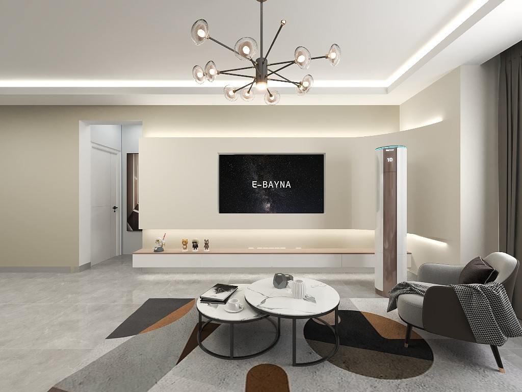 客厅整体运用了时尚的灰蓝色和温柔的奶白色,让整体看起来时尚大气!!