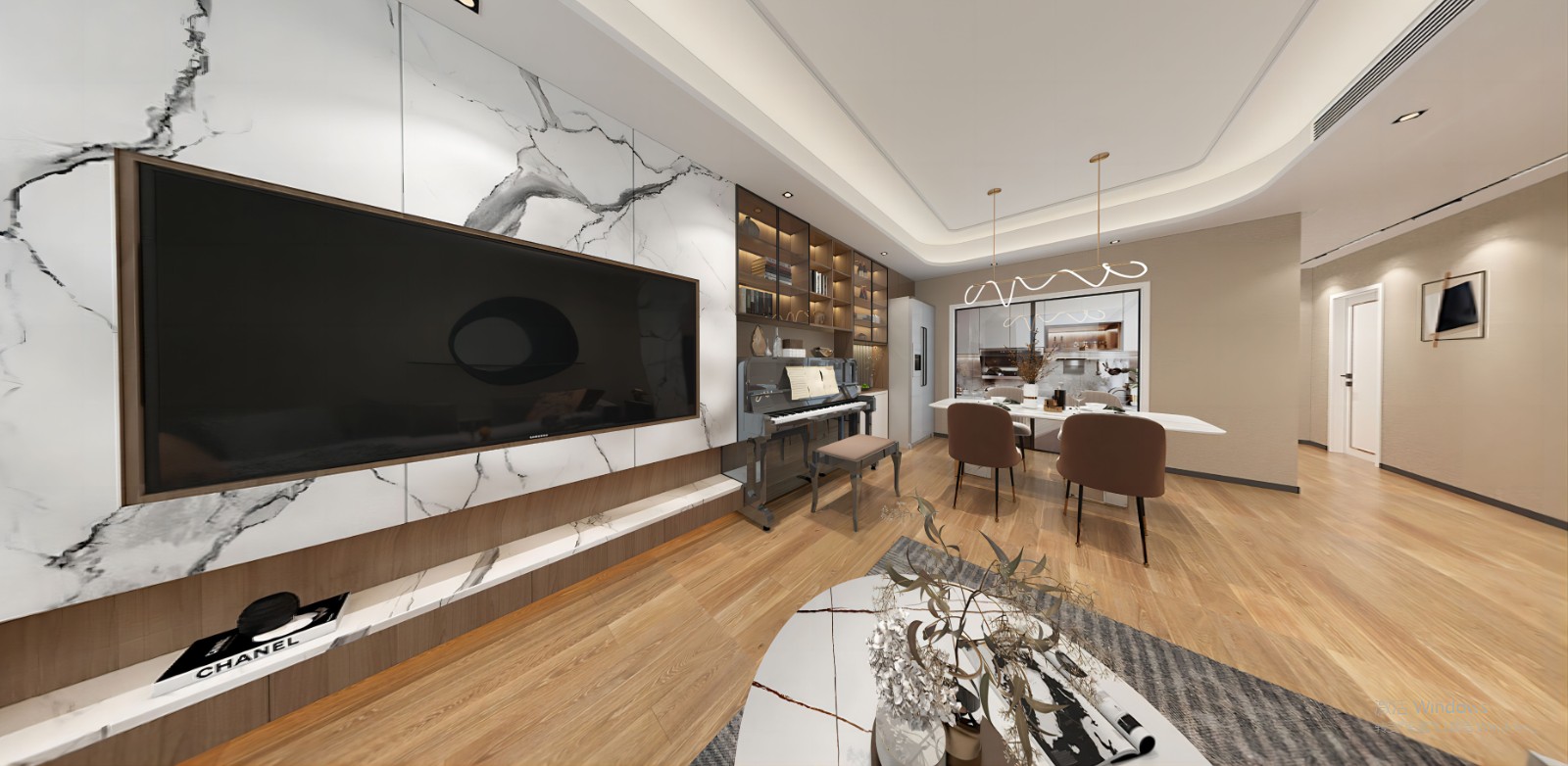 电视柜和餐边柜做成一体,及解决了收纳问题 又可以把钢琴嵌在里面