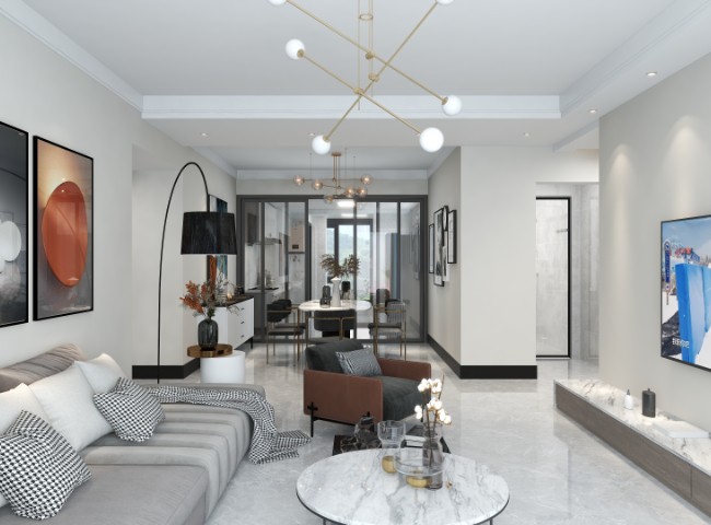 餐厅与客厅一体的空间,营造出一种简约舒适而朴素的空间氛围