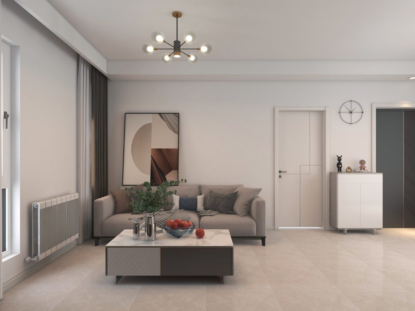 地面通铺米色地砖 墙面白色乳胶漆 顶面石膏吊圈顶