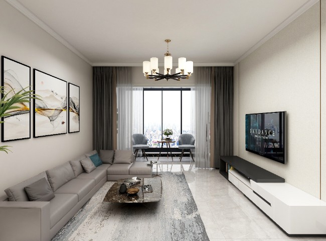 客厅与阳台打通,瓷砖通铺,空间更显宽敞明亮