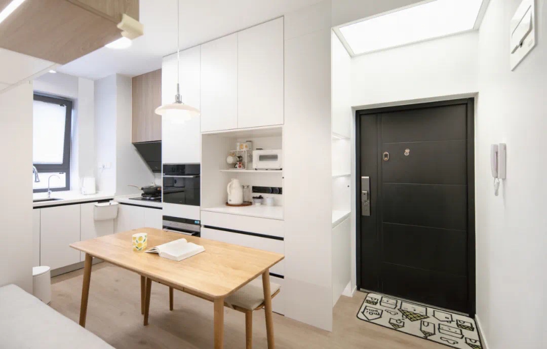改造后我们做了中厨、西厨功能一体化的设计,采用定制家具