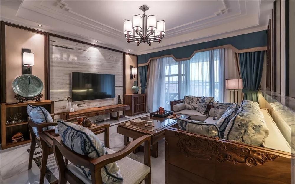 这一套140平米的新中式风格装修,整体以庄重的空间氛围,搭配上儒雅舒适的软装布艺,再点缀上精致清新的细节,装扮出一个典雅高档的中式氛围。
