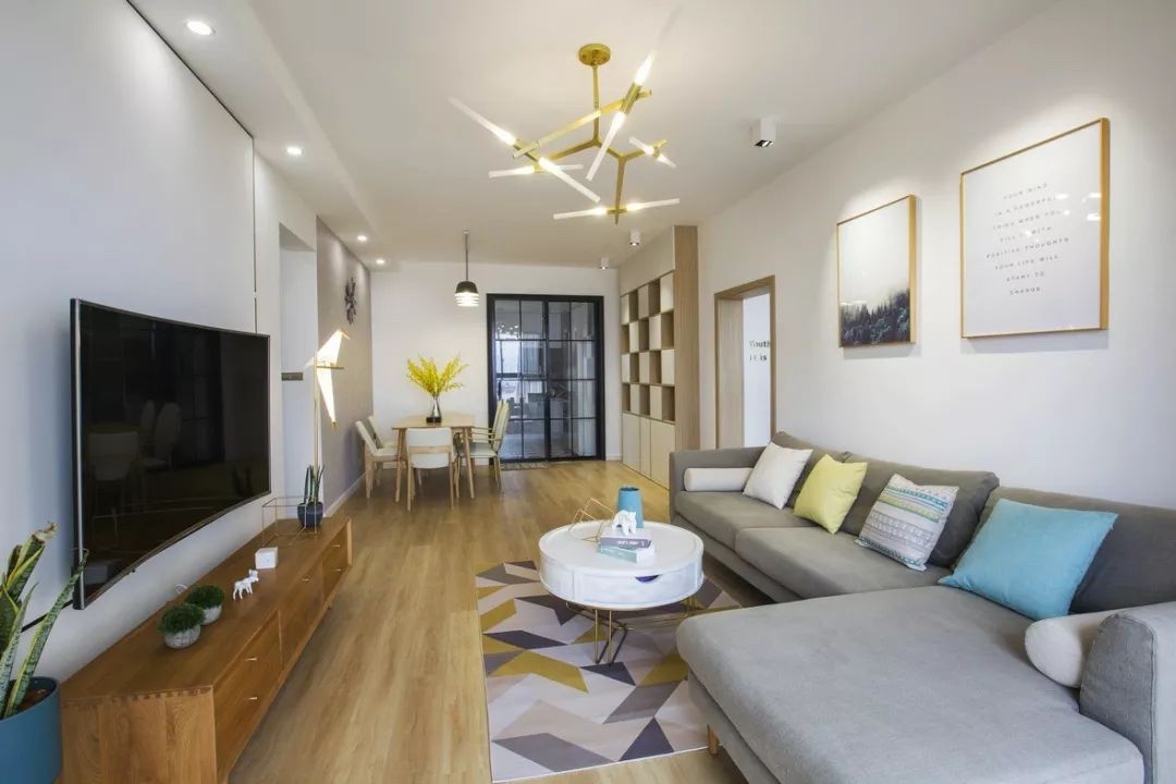 整个空间以白色和原木色为主调,奠定了简约自然的基调。恰到好处的点缀黄色、绿色、蓝色以及金色,很好得提升了空间的质感,营造出温馨优雅的家居氛围。