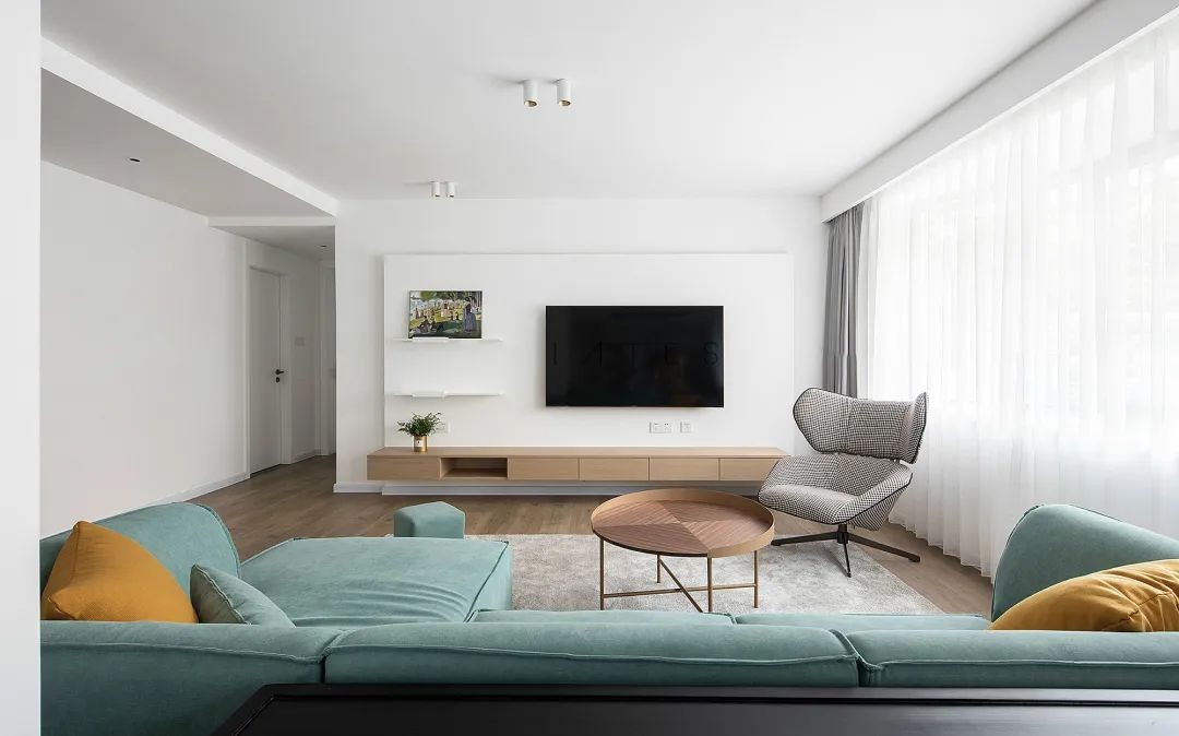 这是一套140平米的现代简约风格装修案例,整体空间采取洁净朴素,以大白墙+木地板的组合设计,带来一个极简氛围的空间,再摆上舒适文艺的家具,使得空间惬意从容