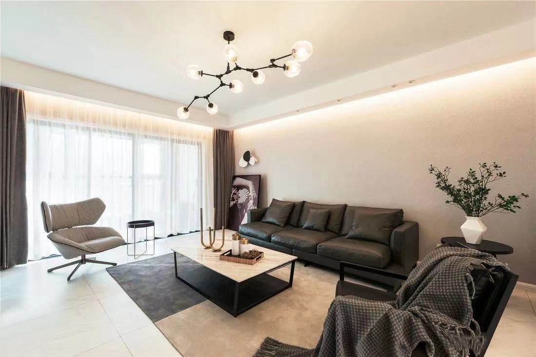 黑色的海吉布沙发,让大面积的白色空间不在显得单调,反而更加凸显出框架结构。