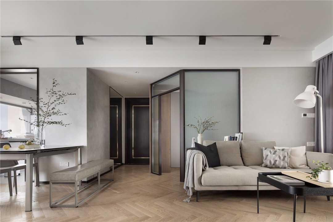 半透的长虹玻璃,既隐私又透光,保证了客厅和玄关***的采光度。