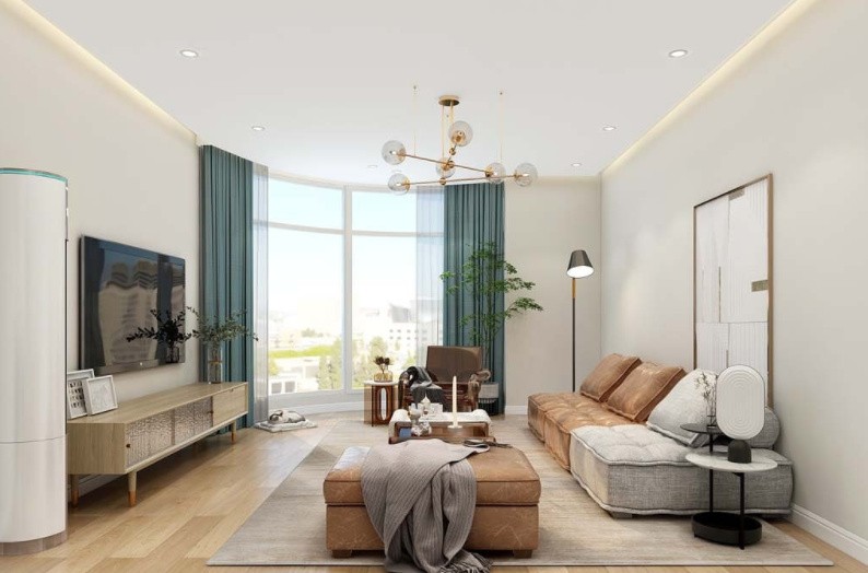 客厅餐厅二者动线流畅,在生活中使用是及其方便的。北欧风的餐桌,上方线条感十足大吊灯造型洋气。