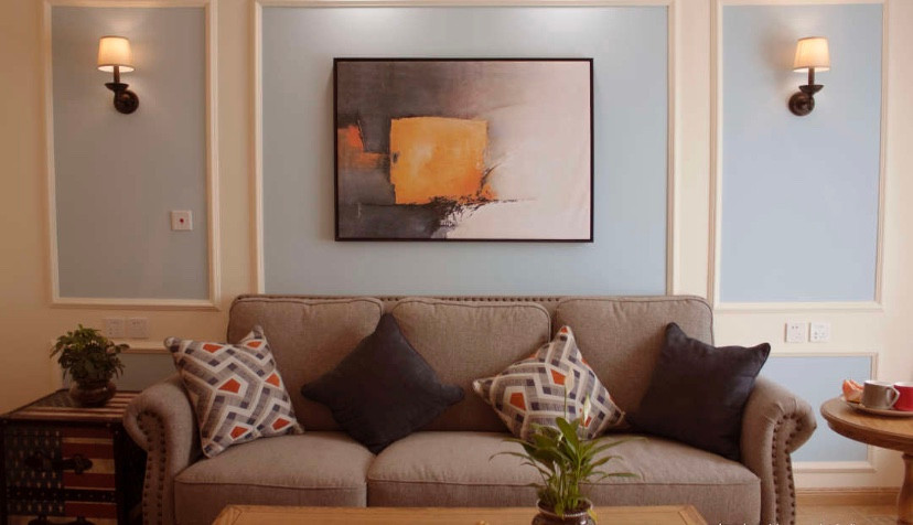 沙发墙上的装饰画增添一种意境的美感,起到点睛的作用。