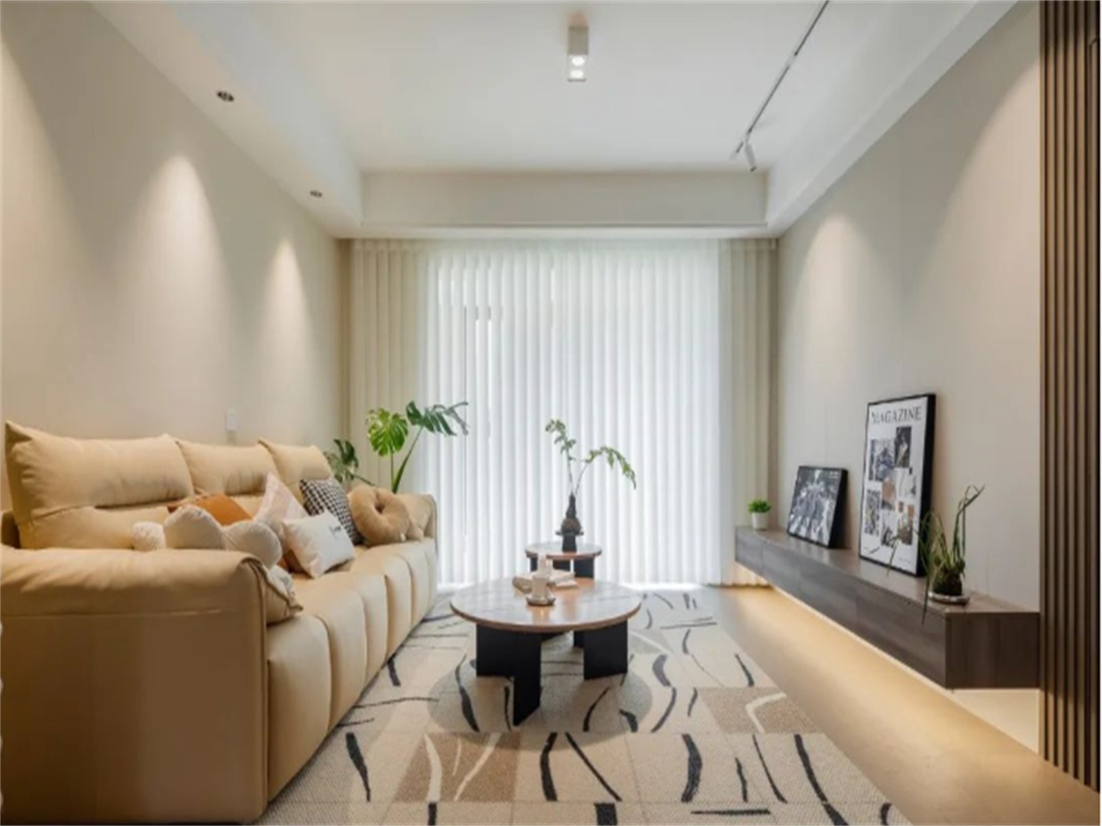 客厅以奶油色为主,透着舒适与优雅,恰到好处的绿植点缀,增添几分自然与生机