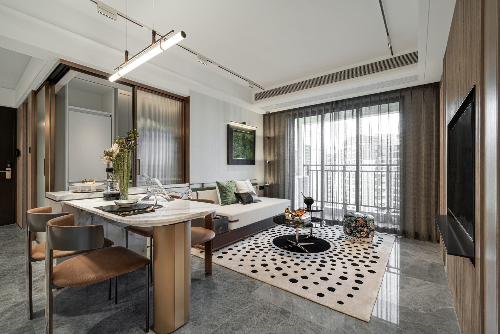 本案建面72㎡,客户背景锁定为钟爱旅行、登山的年轻一族。设计师以更具度假情怀的生活方式来装扮柴米油盐的日常,构建诗性在左,生活行右的轻奢舒享型居所。