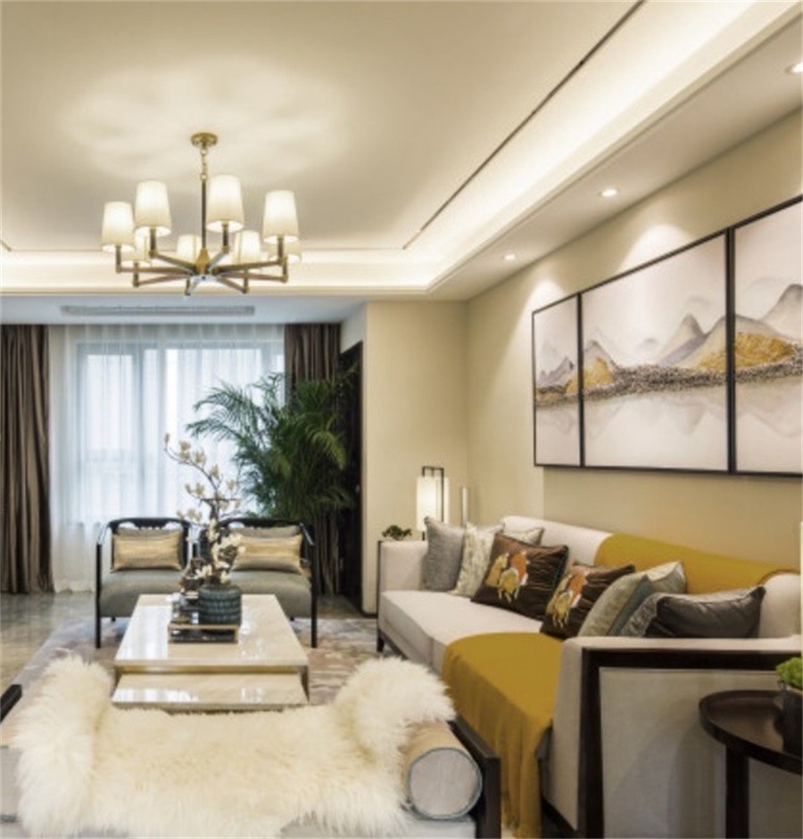 简约而大气的背景墙,融合现代新中式风格设计。
