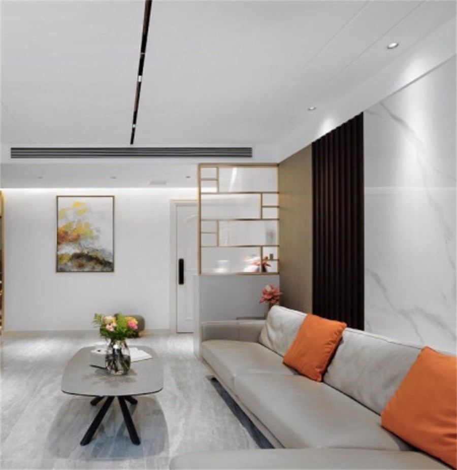 大理石背景和栅栏背景给客厅增添了一些文艺氛围。