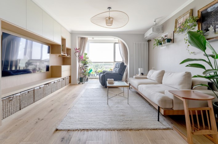 客厅的色调整体采用原木+白以及米色,充分的表现了北欧风格特有的素雅和温馨。