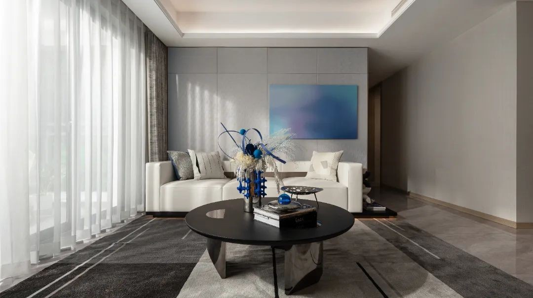 迷幻的装饰画,加上宽阔的空间配上科技感家具,在智能电视,音响的配合下,犹如在科技未来的空间中航行。