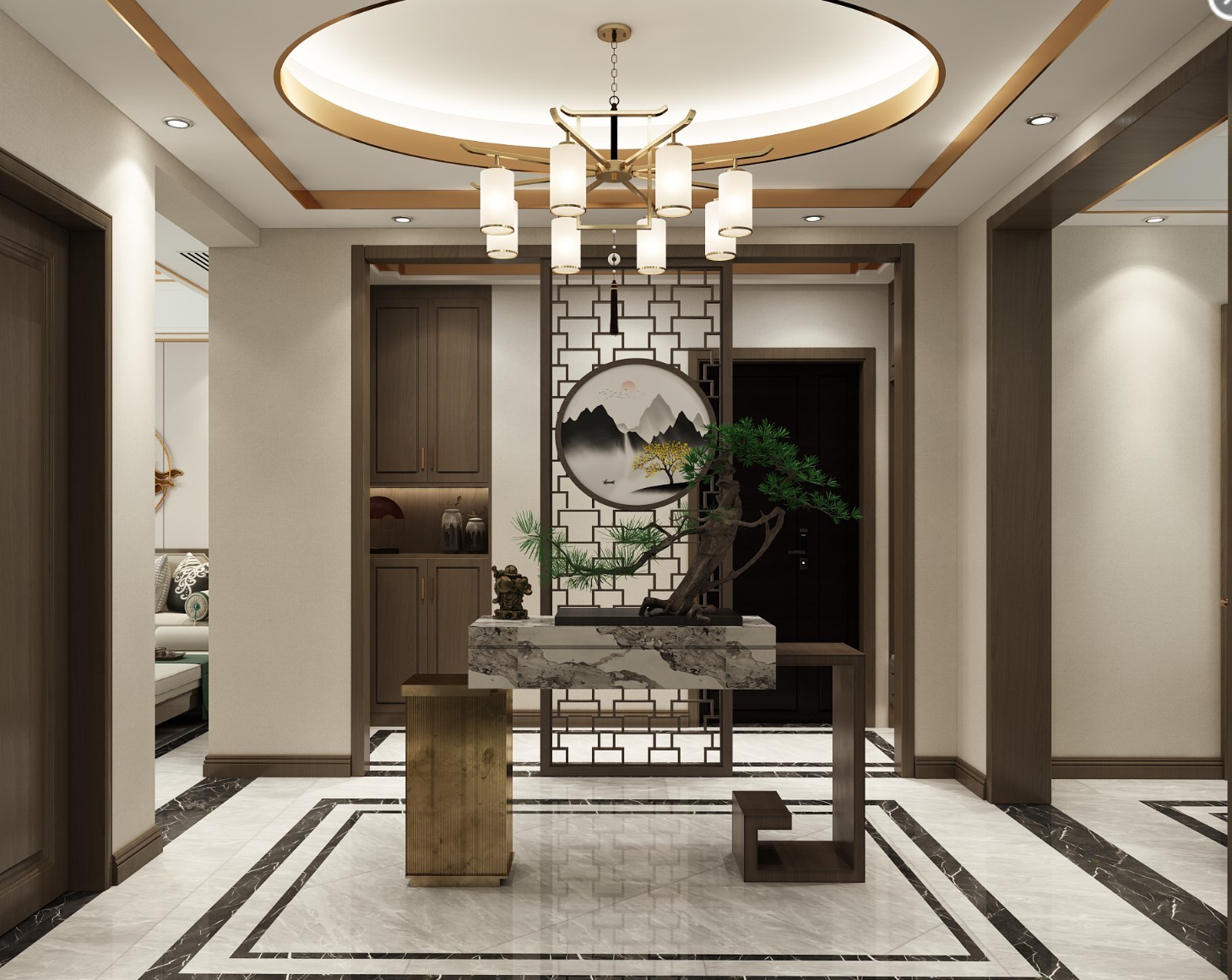 新中式玄关造景隔断。
