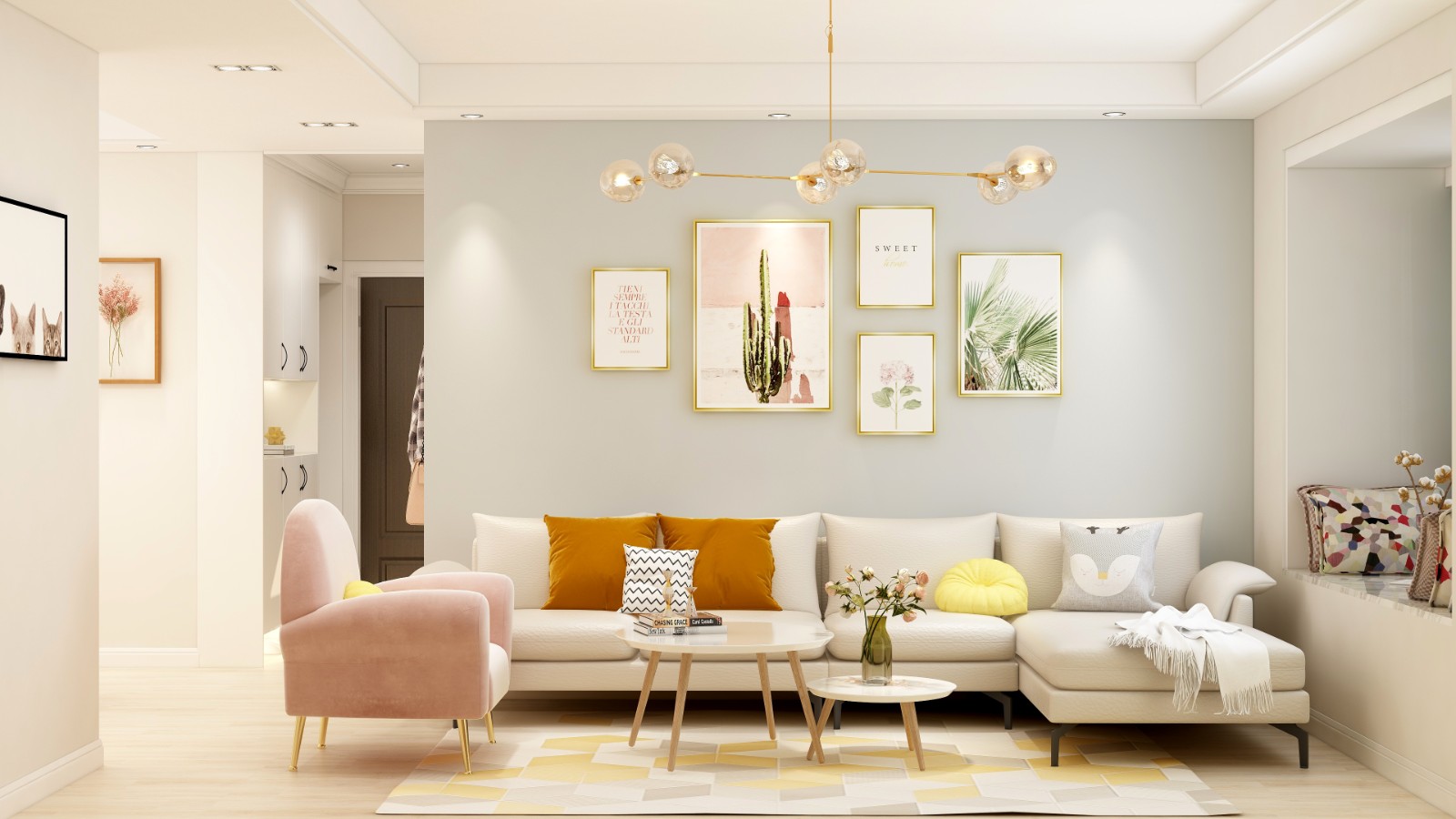 整体采用马卡龙色系,让空间显得格外清新。