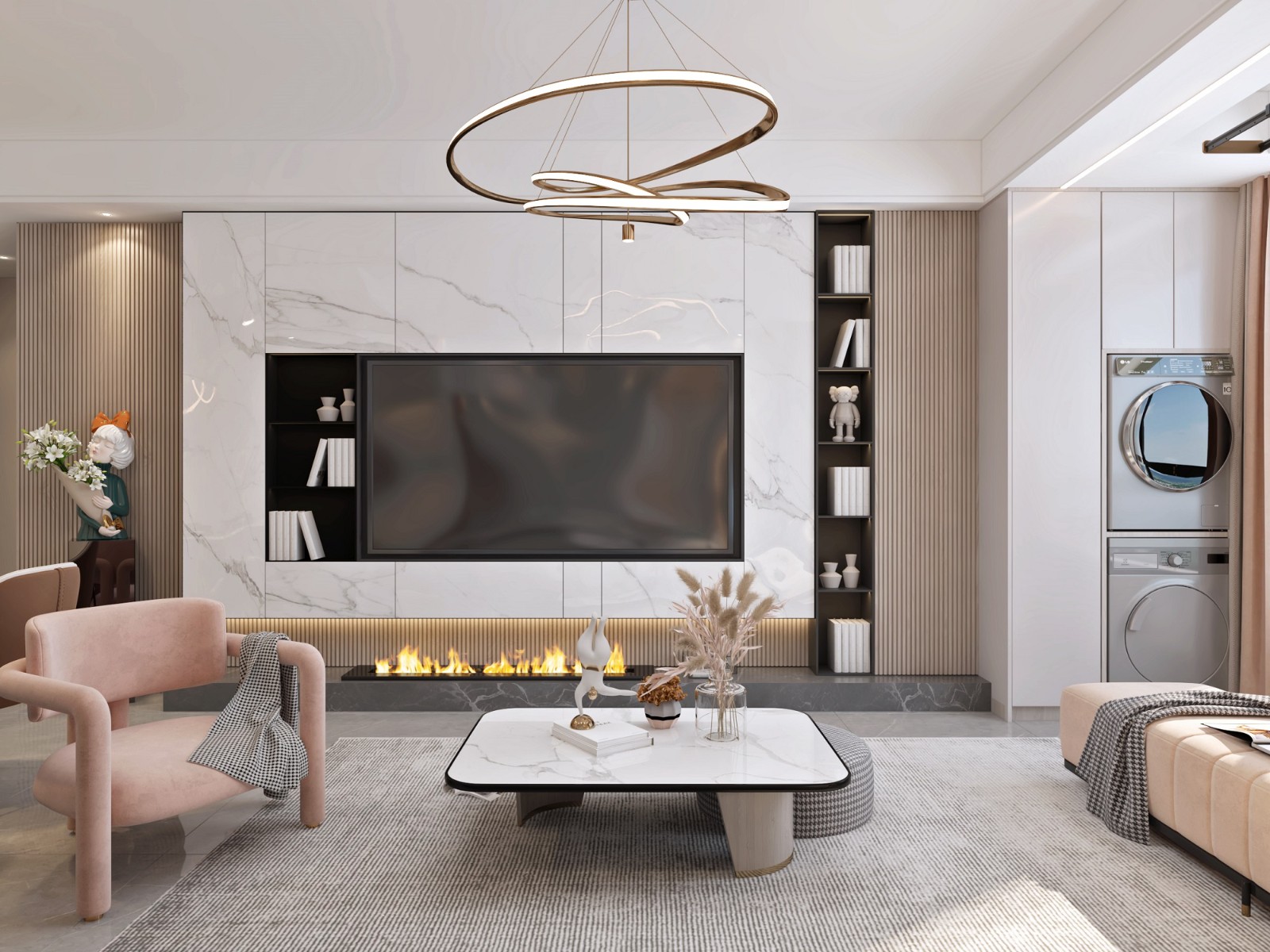 大理石背景墙使空间在视觉上让家居既强大又温馨。