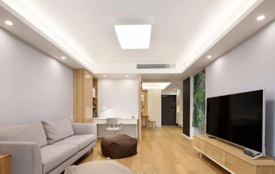 卧室背景是***灰,配上豆绿色床品很有小清新的感觉。