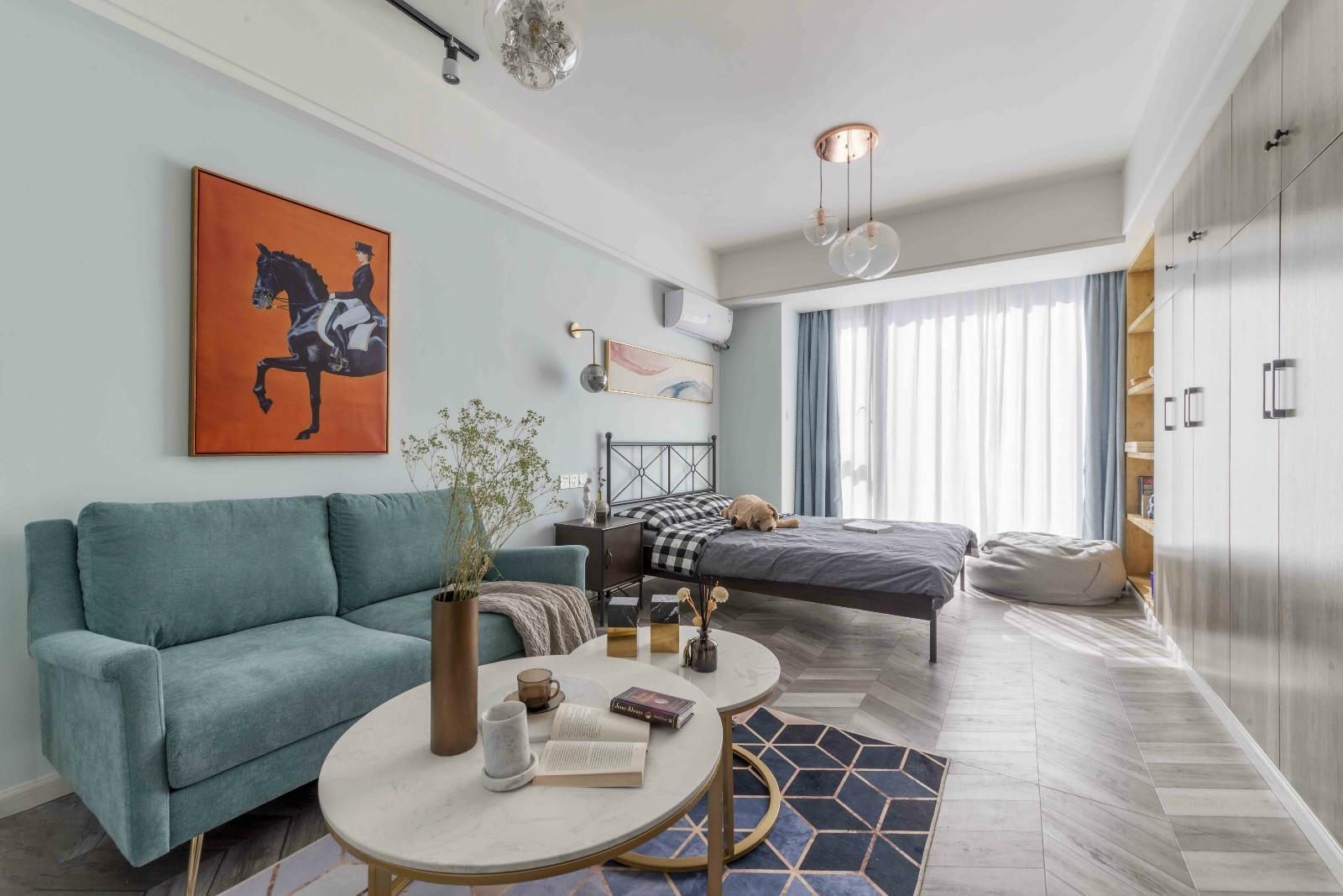 1、北欧ins风,简单用色显得整个空间宽阔易打理。