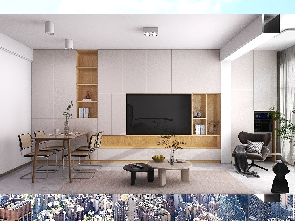 配色为木纹色搭配白色,增加客厅的亮度。