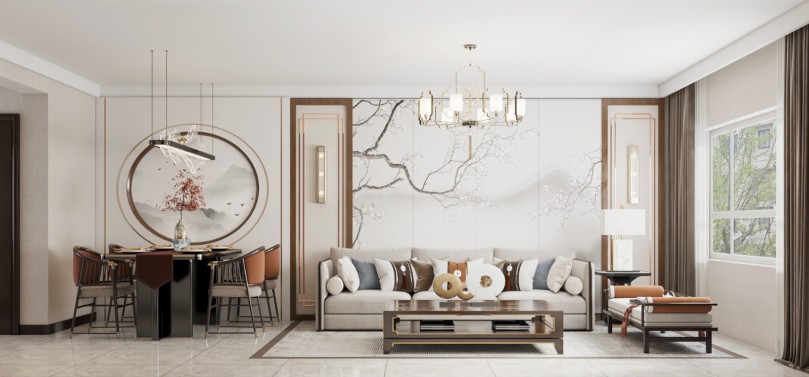 本案为新中式设计,空间有端庄的方,也有大气的圆,打造高雅秀逸的意境美。