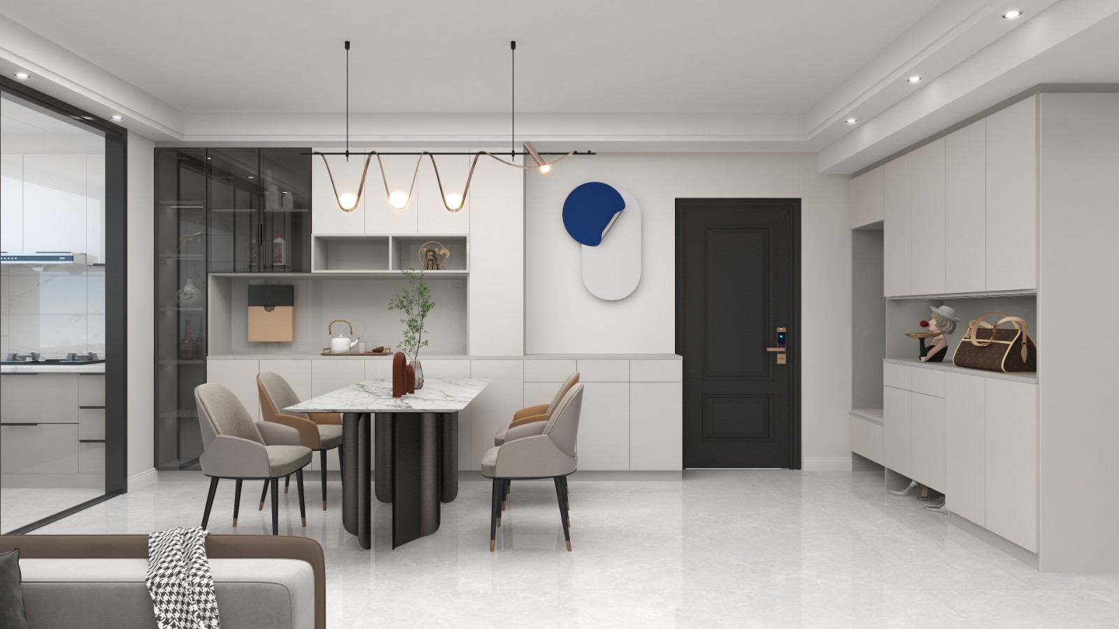 满墙鞋柜与餐边柜,高使用率。