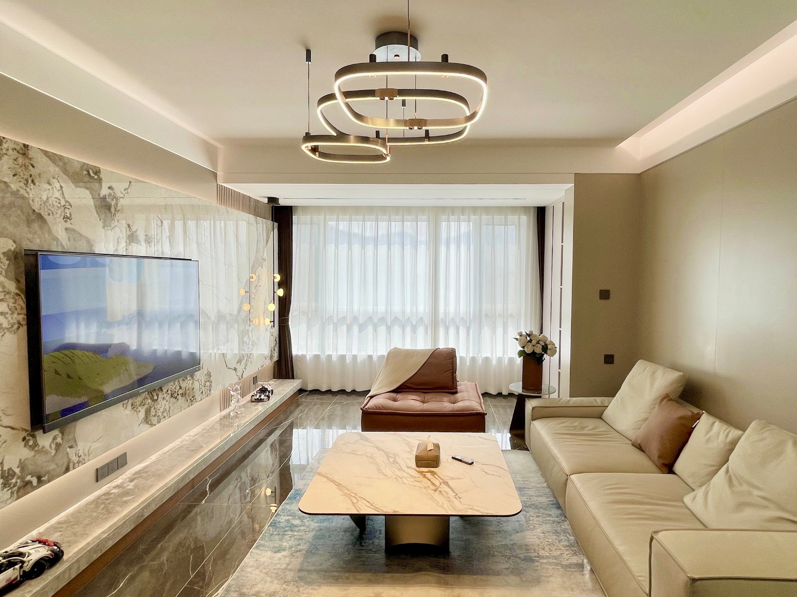 电视背景墙为潘多拉岩板,大面积表达带来美好的祝福