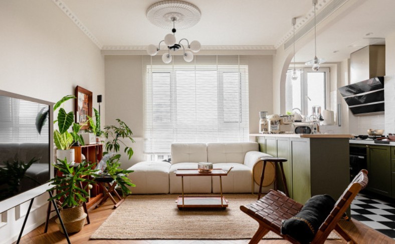 奶油系列的元素、布衣沙发、增添了整体的温馨感,家的感觉稍纵即逝。