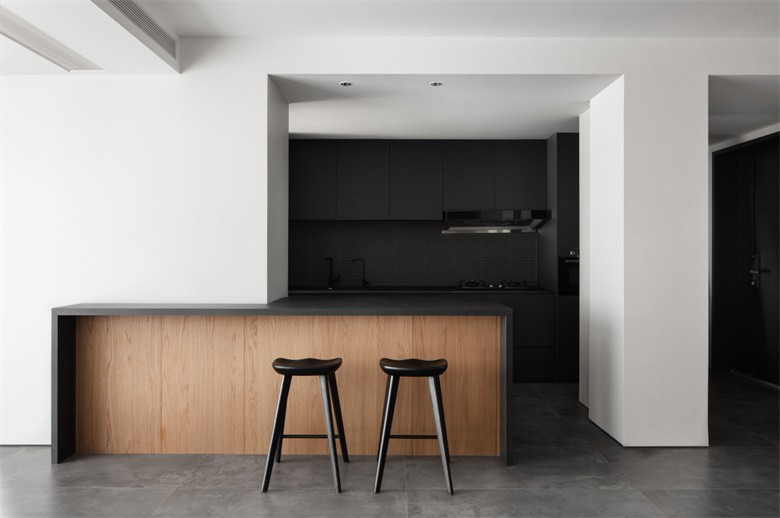 黑与白的连接,空间与空间的交互,加以原木进行点缀