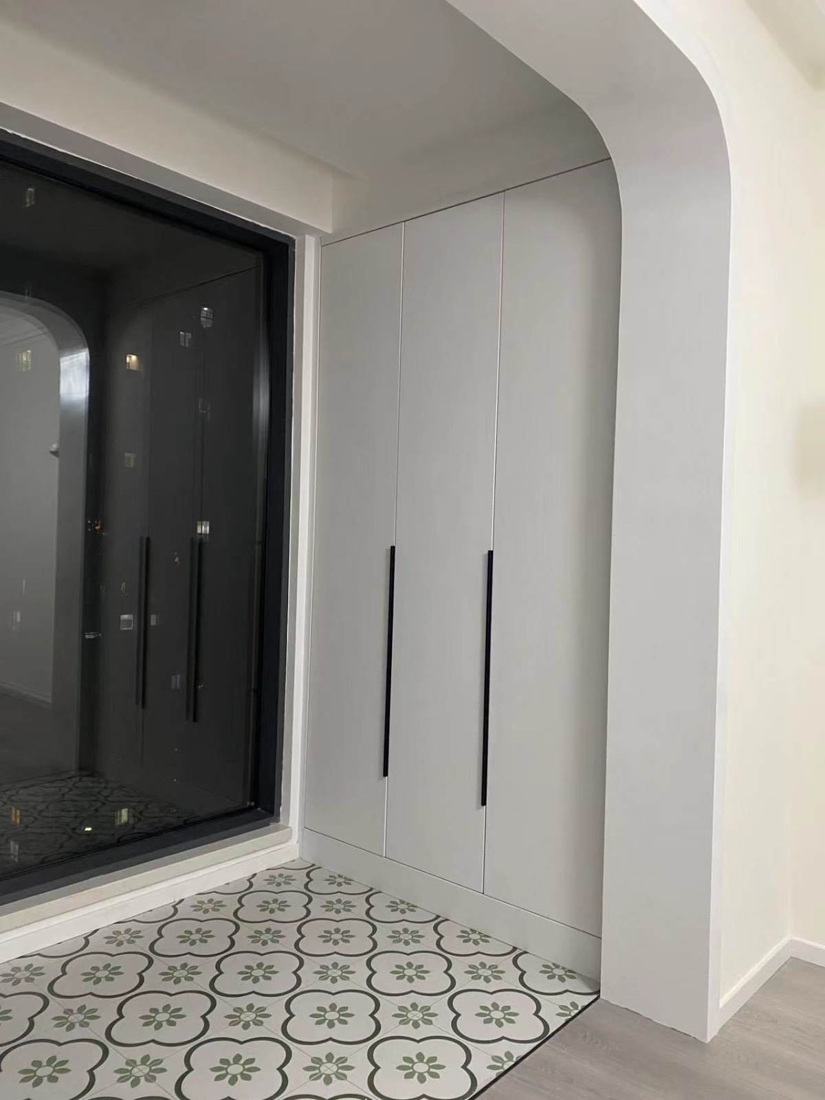 衣柜采用加高平板门的形式 配合半隐形拉手 整体简约大方