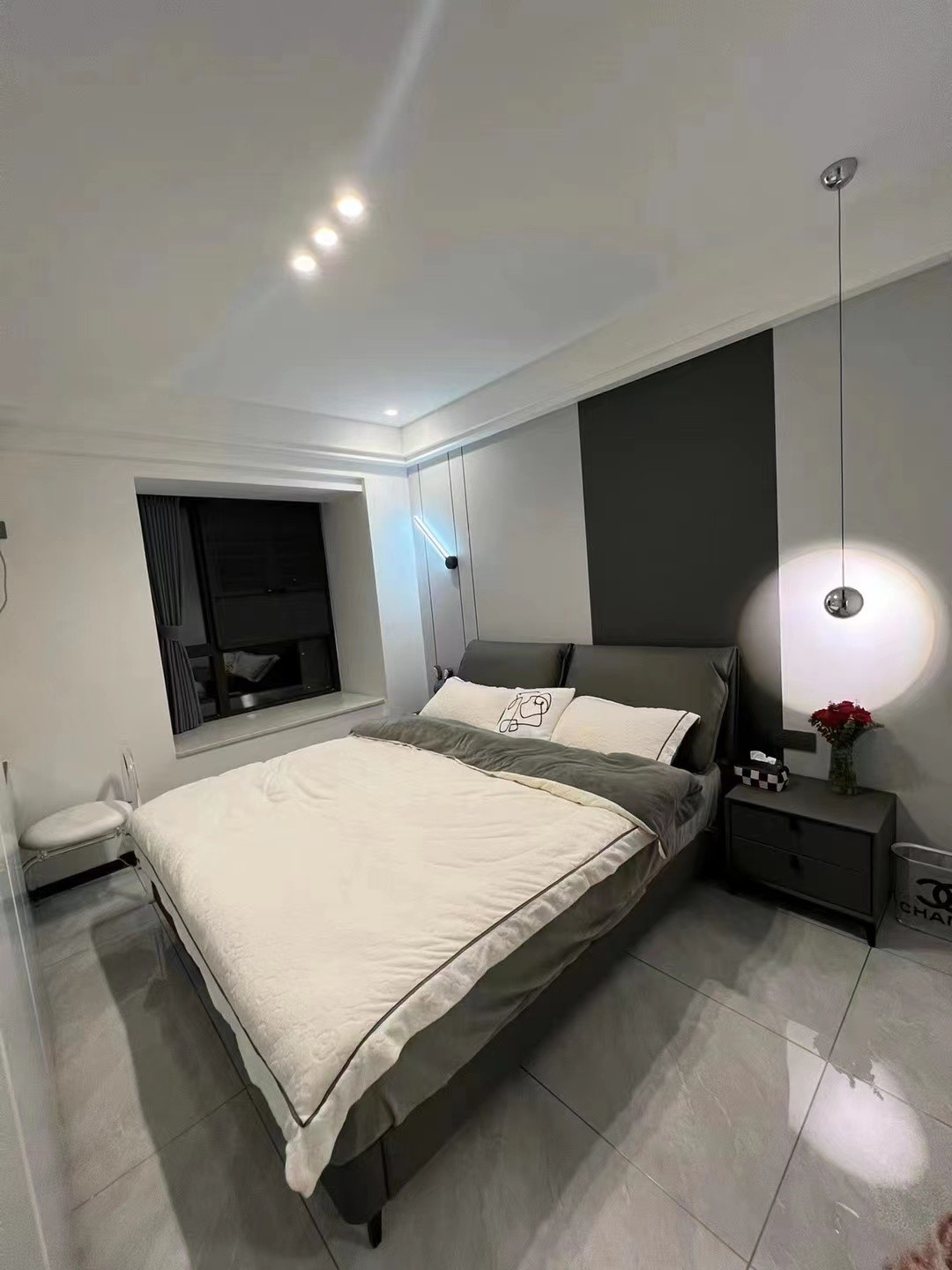 客厅造型边吊和无主灯结合,整体风格以简约为主