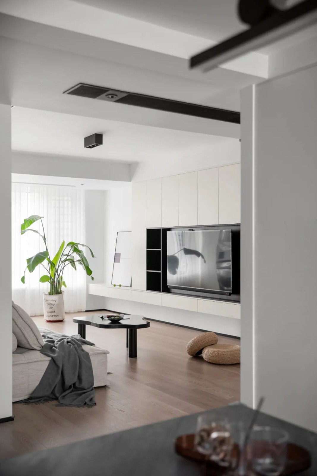 入户空间干净利索,大块面的黑白对比,经久耐看,一进门就可以感受到明亮舒适的氛围。