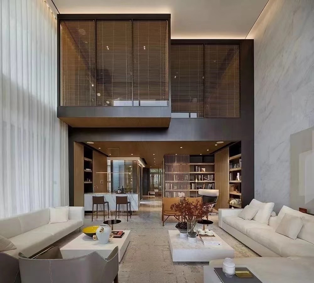居住在山间的豪宅当中,即便是能够欣赏到室外的自然景象,也可以完全放松内心的疲惫和压抑,细节的设计充足展示出空间当中的精致。