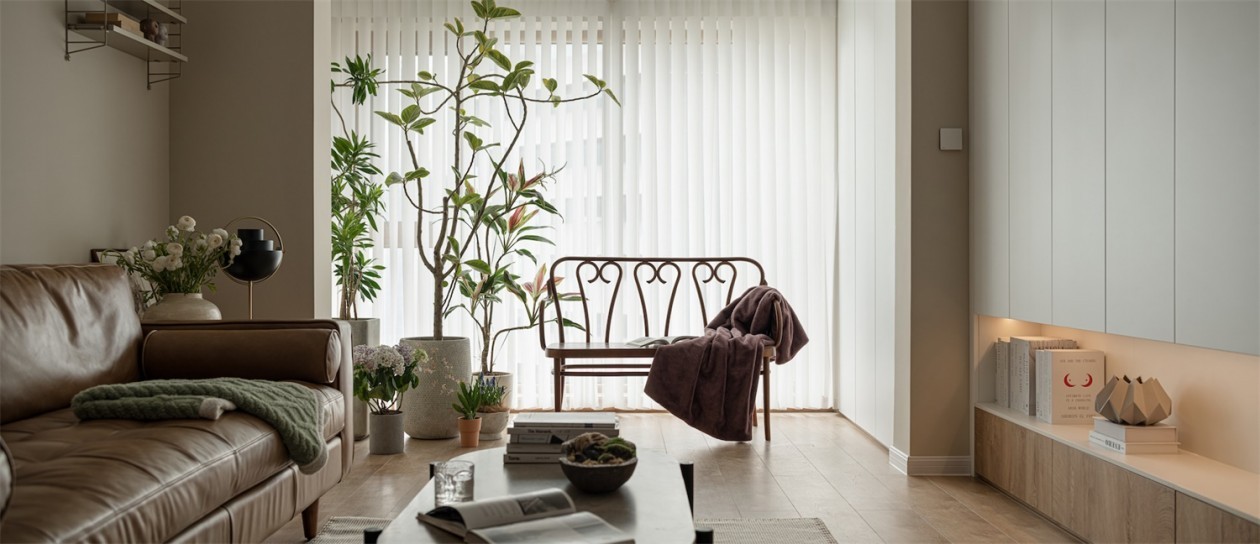 采光通风良好,选用沉稳的木色,营造舒适安静的休憩氛围,同时,也与整个家的自然气质相呼应,简洁素雅的布置,营造出一种侘寂之感。