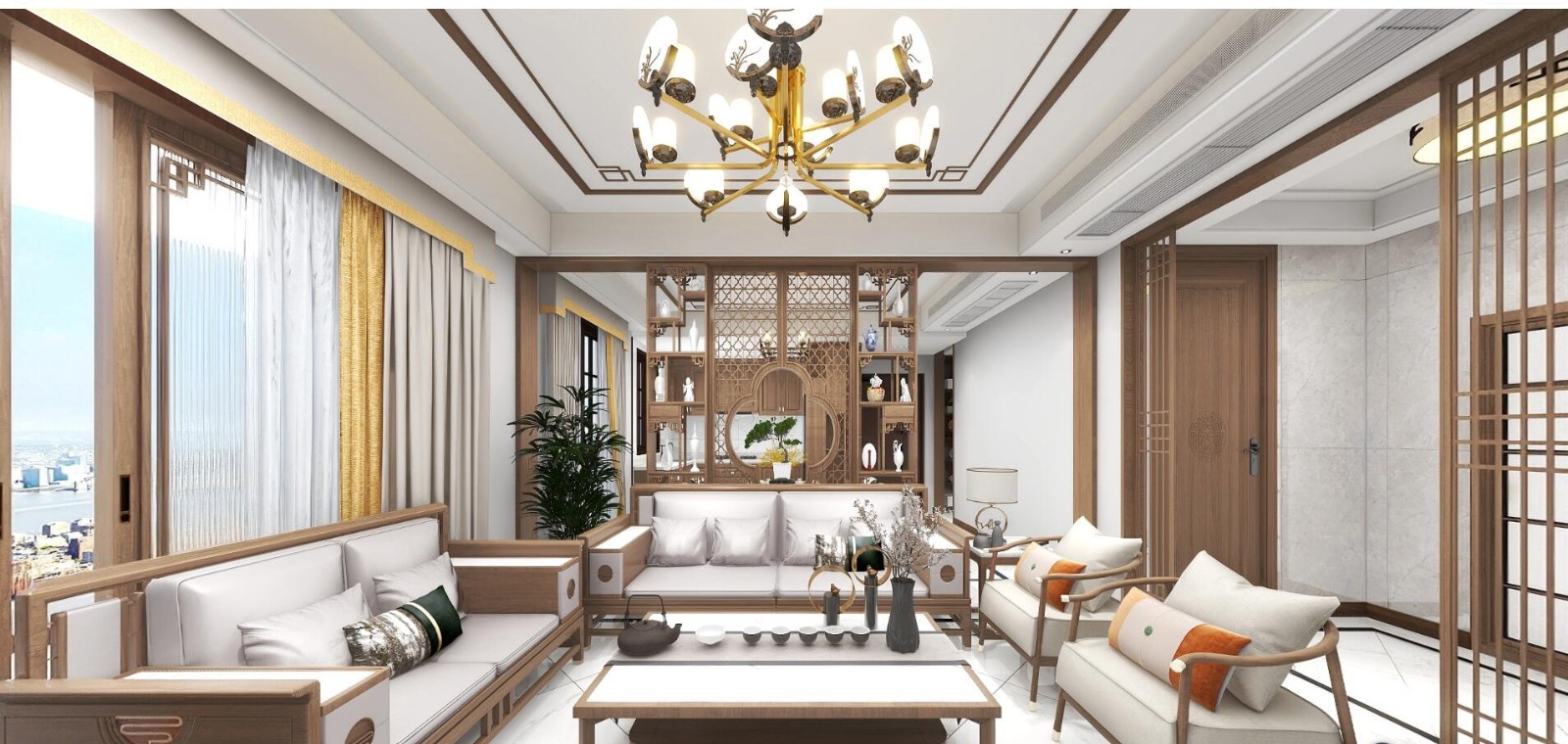 新中式风格不是纯粹的元素堆砌,而是通过对传统文化的认识,将现代元素和传统元素结合在一起,以现代人的审美需求来打造富有传统韵味的事物,让传统艺术在当今社会得到合适的体现。