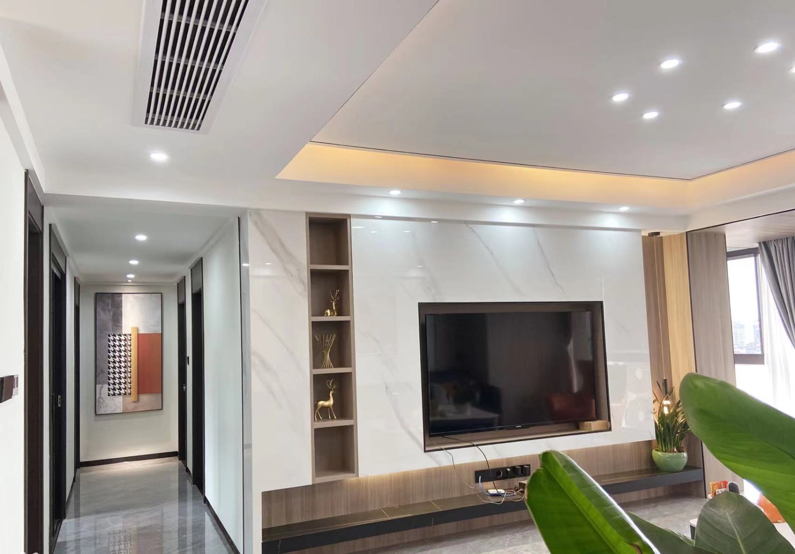 客厅无主灯,暗藏电视