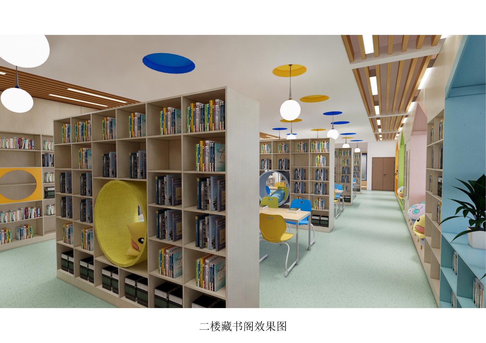 装修面积约150平。功能划分:借阅台、借阅机、墙身书柜、中间立式双边书柜。装修风格:现代简约,配以多彩颜色点缀。