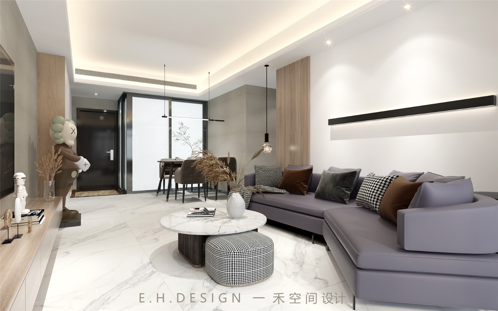拆除原始墙体,安装玻璃隔断,透光不透景 ,也拓展了客餐厅的视角。