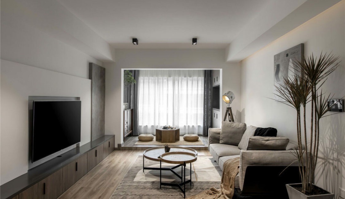 空间色调利用不同的灰度来表现空间的温度,原有的阳台移门也被打开,整体空间从视觉上看去更为开阔。