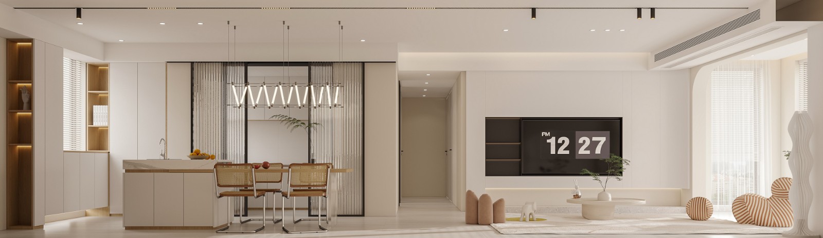 白色开放式橱柜效果。