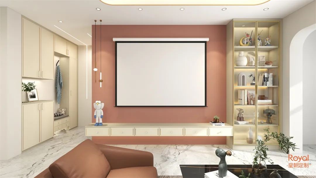 带点奶油般温和的香槟金点缀以少女心爆棚的蔷薇粉色,亮丽的灯光系统,外加造型简约的真皮沙发,这方天地朝气勃勃,亦不失***感。