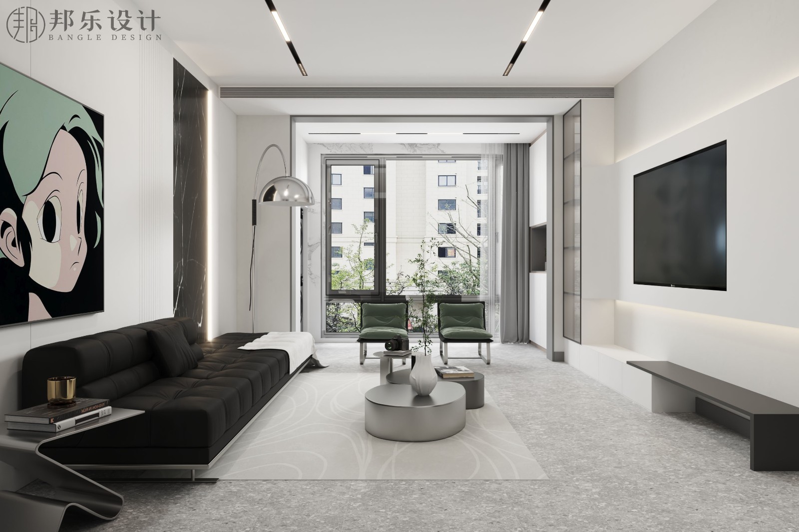 客厅没有过多装饰,这片重点的区域在视觉上设计比较简洁 大气