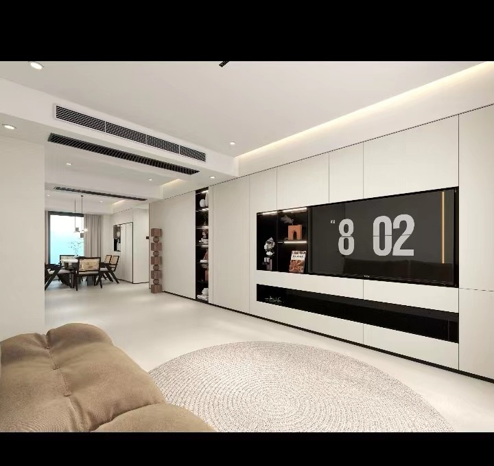 以大面积的暖灰色肌理勾勒出空间墙面的底色